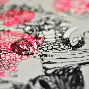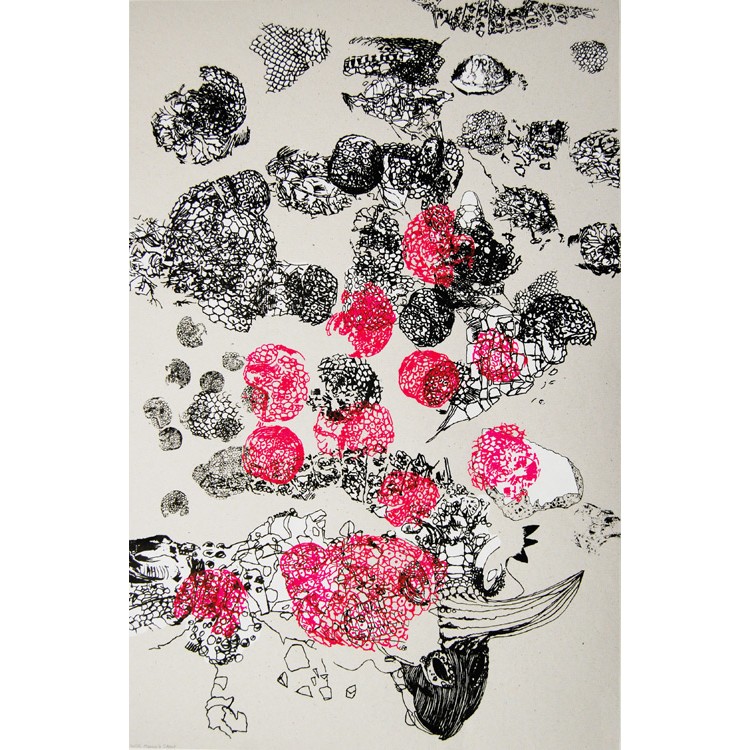 Affiche sérigraphiée 3 couleurs sur papier recyclé blanc.