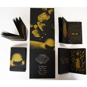Livre sérigraphié encre dorée sur papier noir.