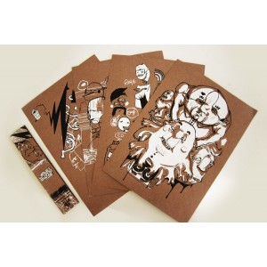 Sérigraphie 2 couleurs, noir et blanc, sur papier recyclé brun.