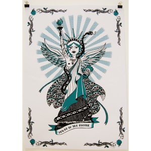 Affiche sérigraphiée 2 couleurs sur papier blanc.