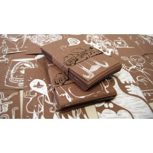 48 cartes 10X15cm sérigraphie 1 couleur, blanc, sur papier recyclé brun.