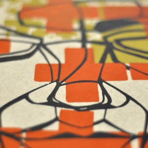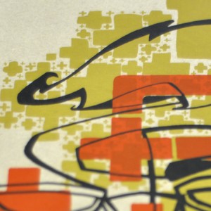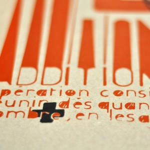 Affiche sérigraphiée 3 couleurs sur papier recyclé blanc.