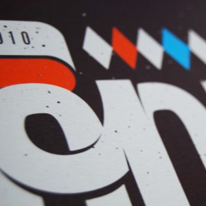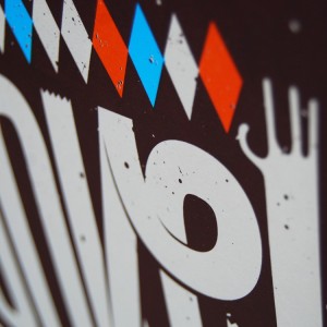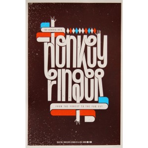 Affiche sérigraphiée à la main, 3 couleurs sur papier "Keay coulour recycled moka", pour le concert de "Honkeyfinger" au festival TGV Génériq 2010,