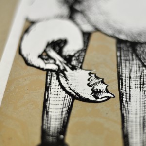 Affiche sérigraphiée 3 couleurs sur papier recyclé brun.