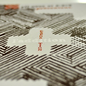 Affiche sérigraphiée 3 couleurs sur papier recyclé brun.