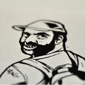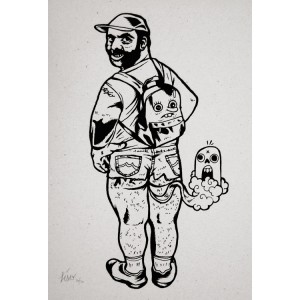 Sérigraphie 1 couleur sur papier recyclé blanc.