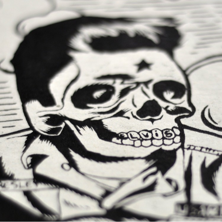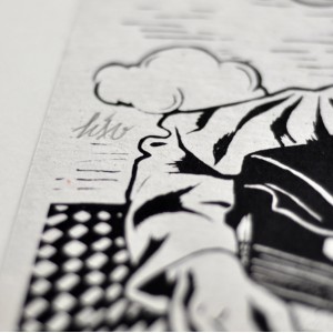 Sérigraphie 1 couleur sur papier recyclé blanc.