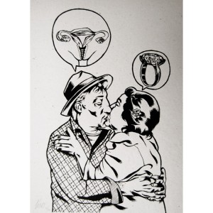 Sérigraphie 1 couleur sur papier recyclé blanc.