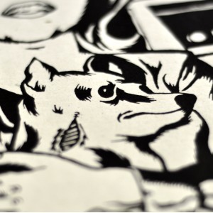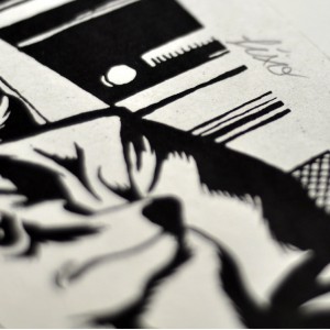 Sérigraphie 1 couleur sur papier recyclé blanc.
