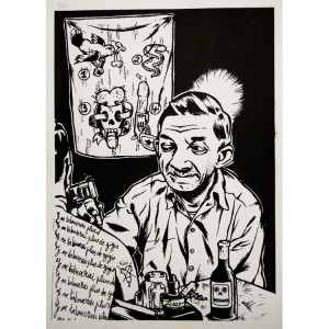 Sérigraphie 1 couleur sur papier recyclé blanc.