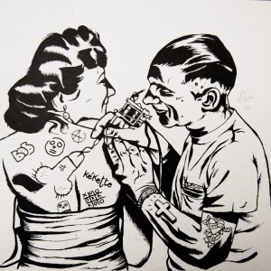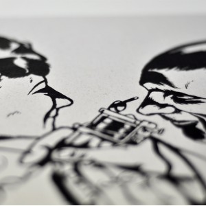 Sérigraphie 1 couleur sur papier recyclé blanc.