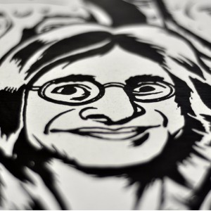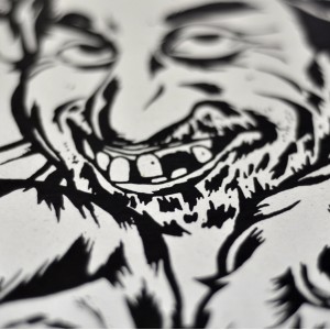 Sérigraphie 1 couleur sur papier recyclé blanc.