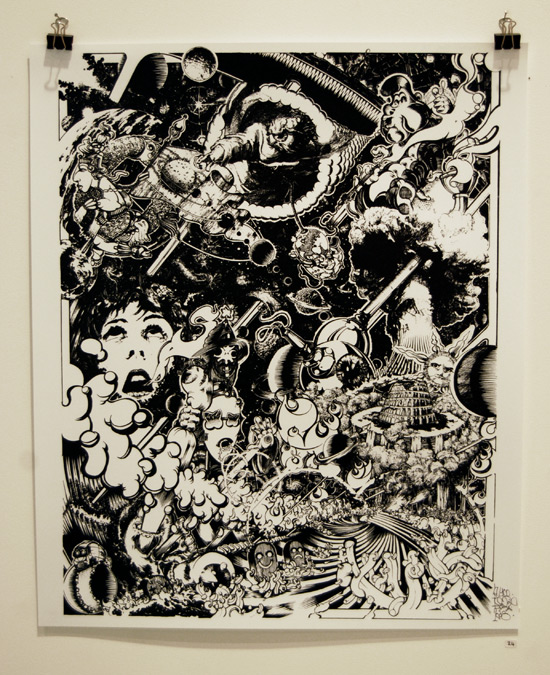 VORTEX sera accompagné de certains dessins originaux ayant servi à le composer, de sérigraphies inédites… ou pas, d’œuvres diverses et variées (soyons précis) réalisées par les artistes participants.
